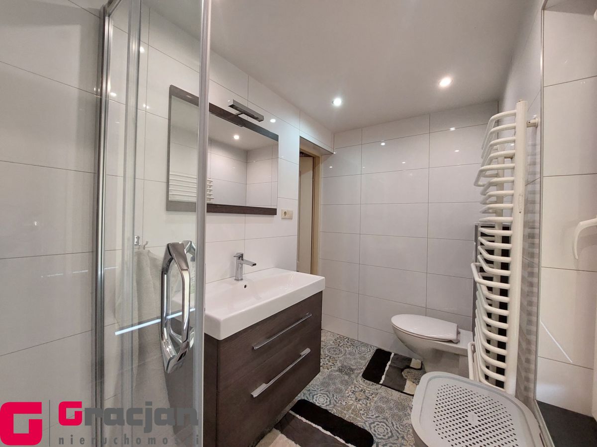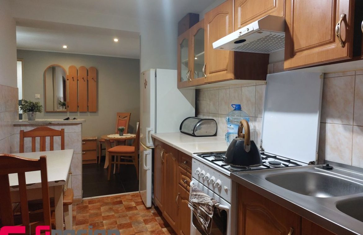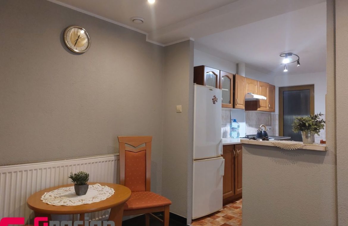 Powierzchnia mieszkalna składa się z przedsionka, wyremontowanej łazienki, wyposażonej kuchni i dwóch pokoi, kompletnie umeblowanych