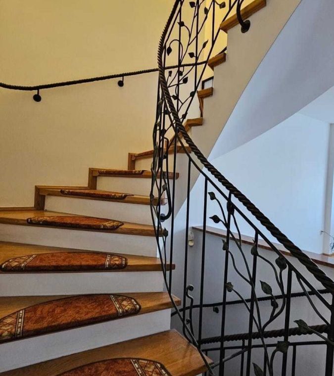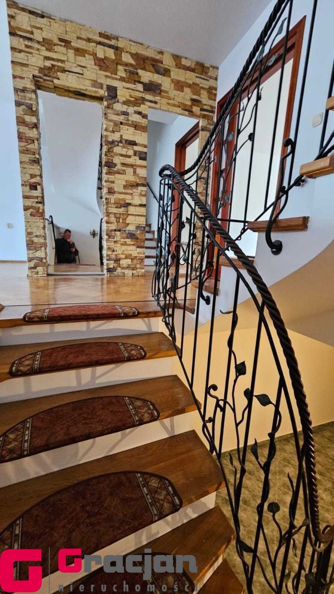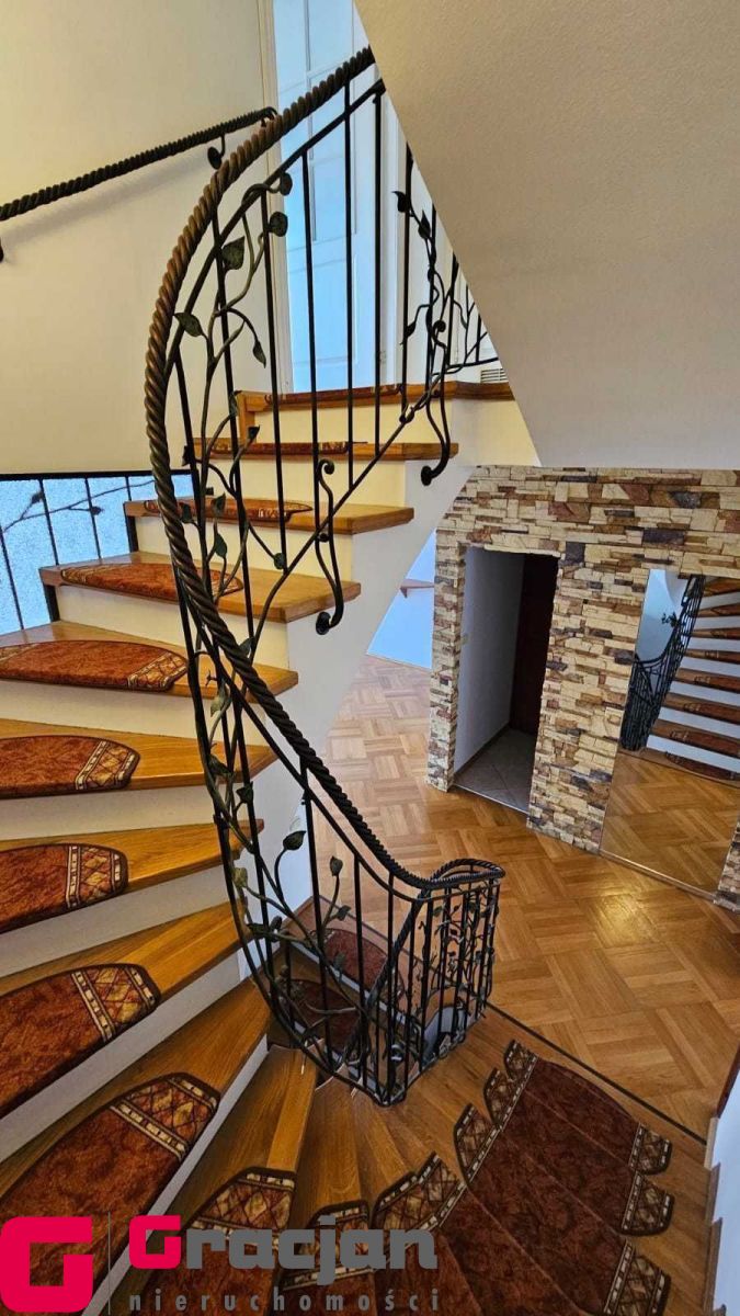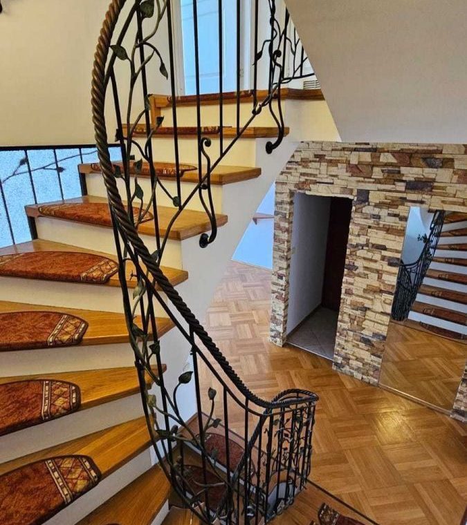 Całość powierzchni rozkłada się na 112 m2 parteru i piętra oraz ok 80 m2 przyziemia z osobnym mieszkaniem oraz garażem z bramą na pilota i pomieszczeniem gospodarczym.