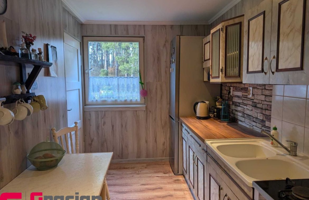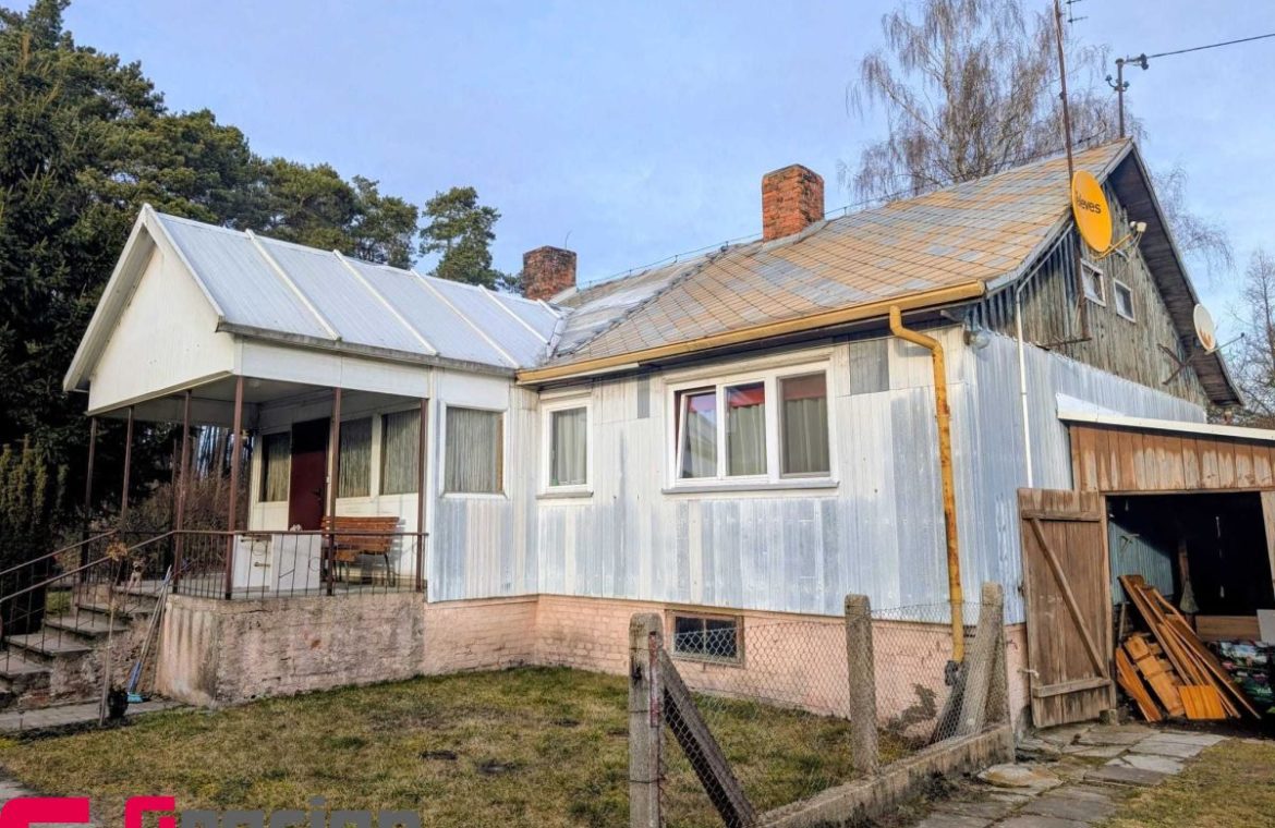 Urokliwie położony pod lasem drewniany domek, z działką o dużym potencjale