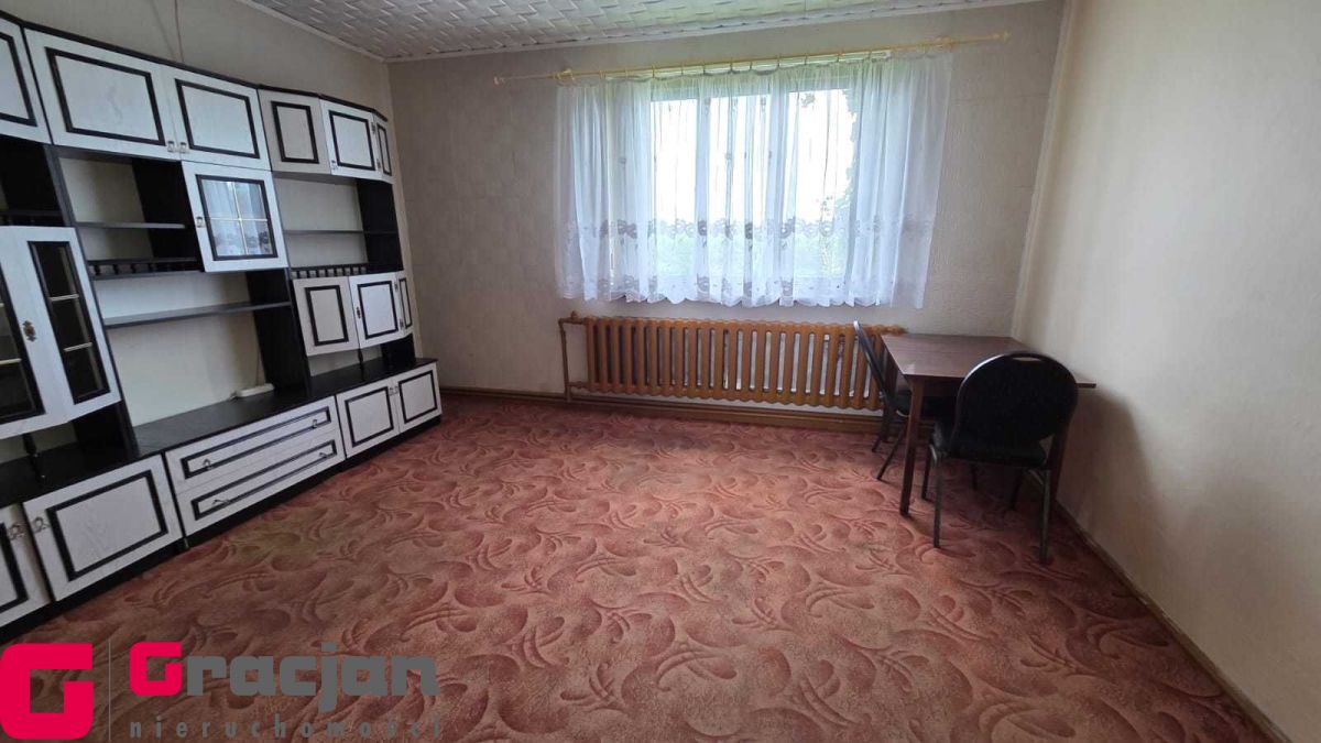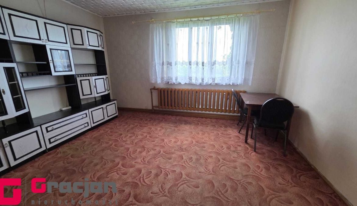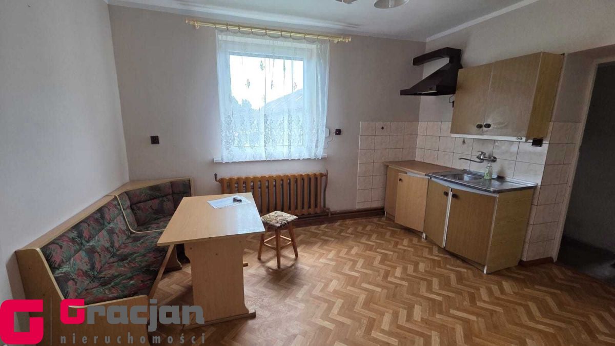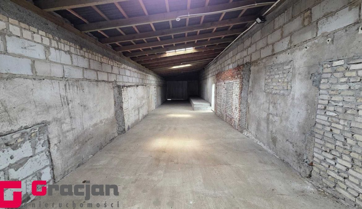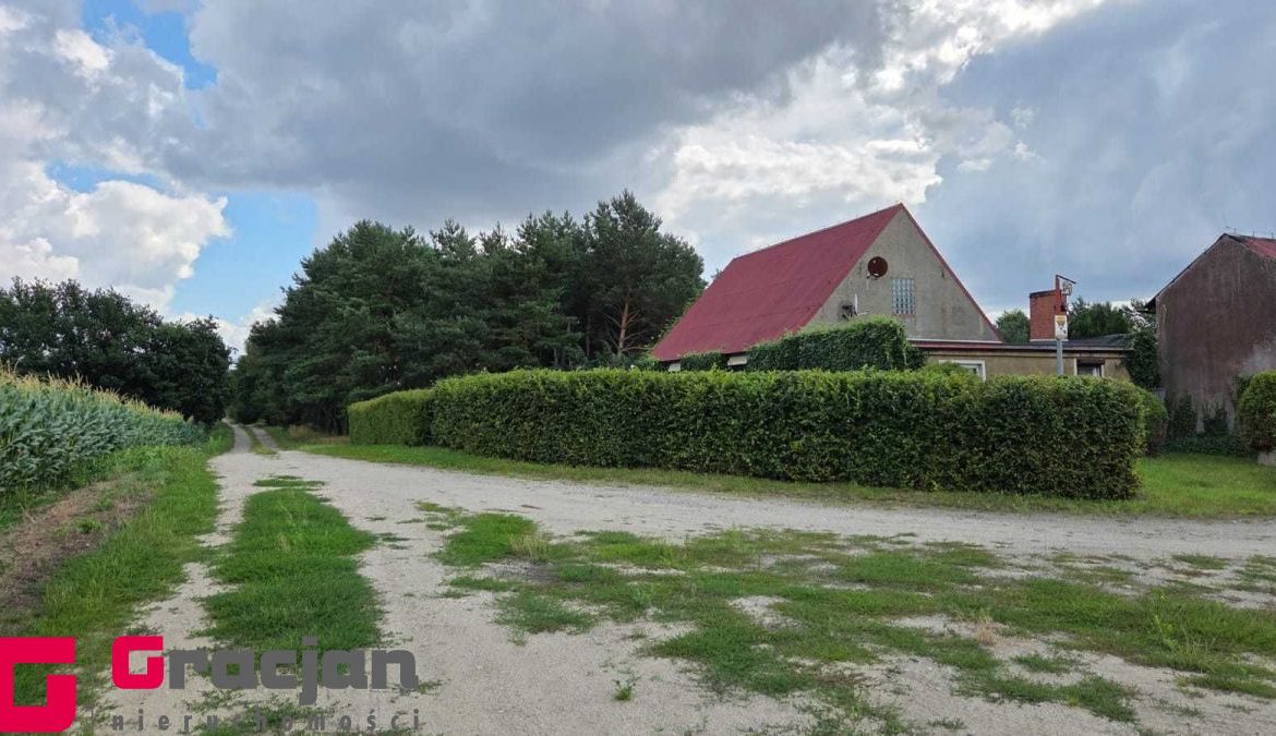 Budynek mieszkalny z lat 60 tych do remontu z centralnym ogrzewaniem na ekogroszek – 4 pokoje , kuchnia , łazienka + poddasze do adaptacji . Dodatkowo budynek magazynowy 422 m2 , drugi 150 m2 i trzeci 120 m2.
