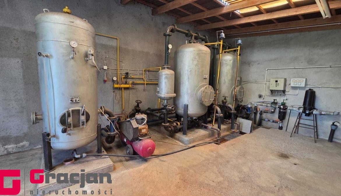 Sprzedamy ustronnie położoną nieruchomość z możliwością wykorzystania do prowadzenia działalności gospodarczej z wykorzystaniem budynków magazynowo – produkcyjnych , wiat oraz profesjonalnej studni głębinowej o głębokośc i 115 m z zezwoleniem wodnoprawnym na czerpanie 18.000 litrów / godzinę !!