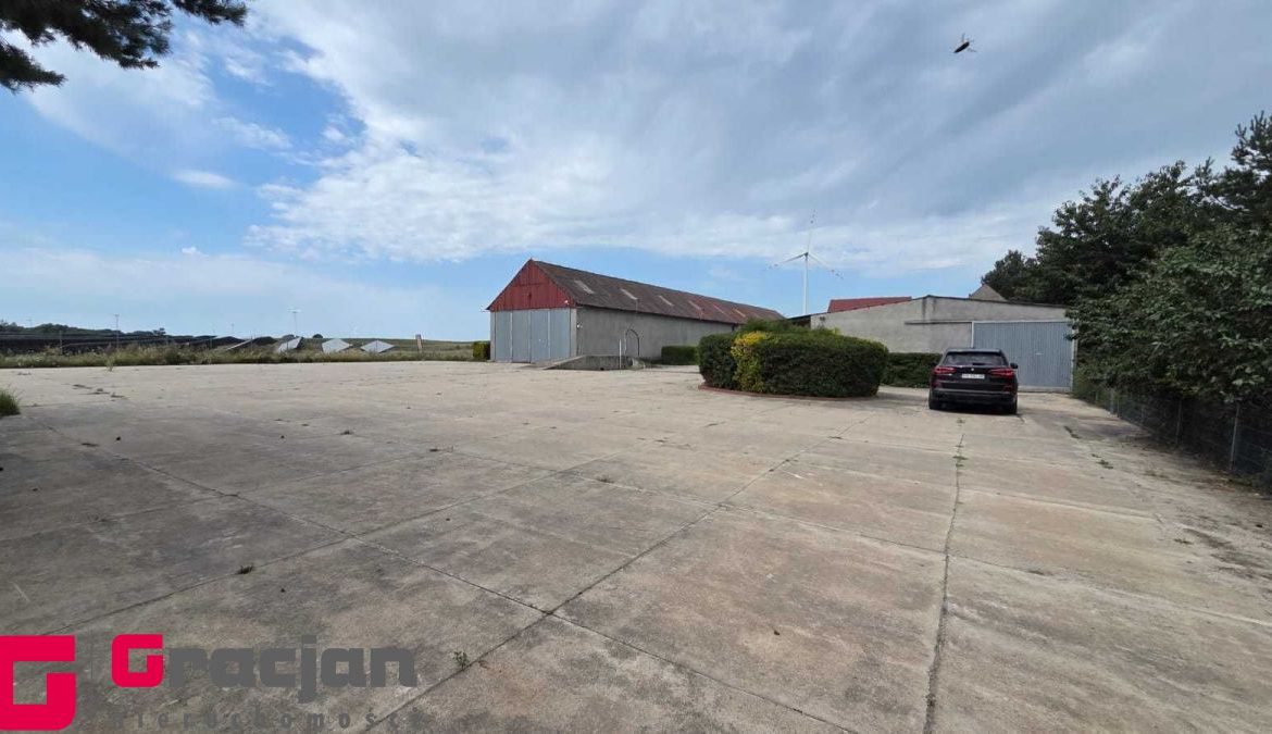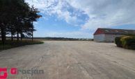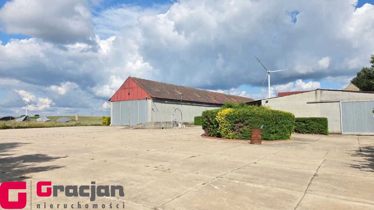 Budynek gospodarczy 60 m2 , dwie wiaty o łącznej powierzchni ok 100 m2 , utwardzony plac dojazdowy dla TIR ok 1000 m2 + rampa załadunkowa , teren ogrodzony i oświetlony oraz monitorowany.