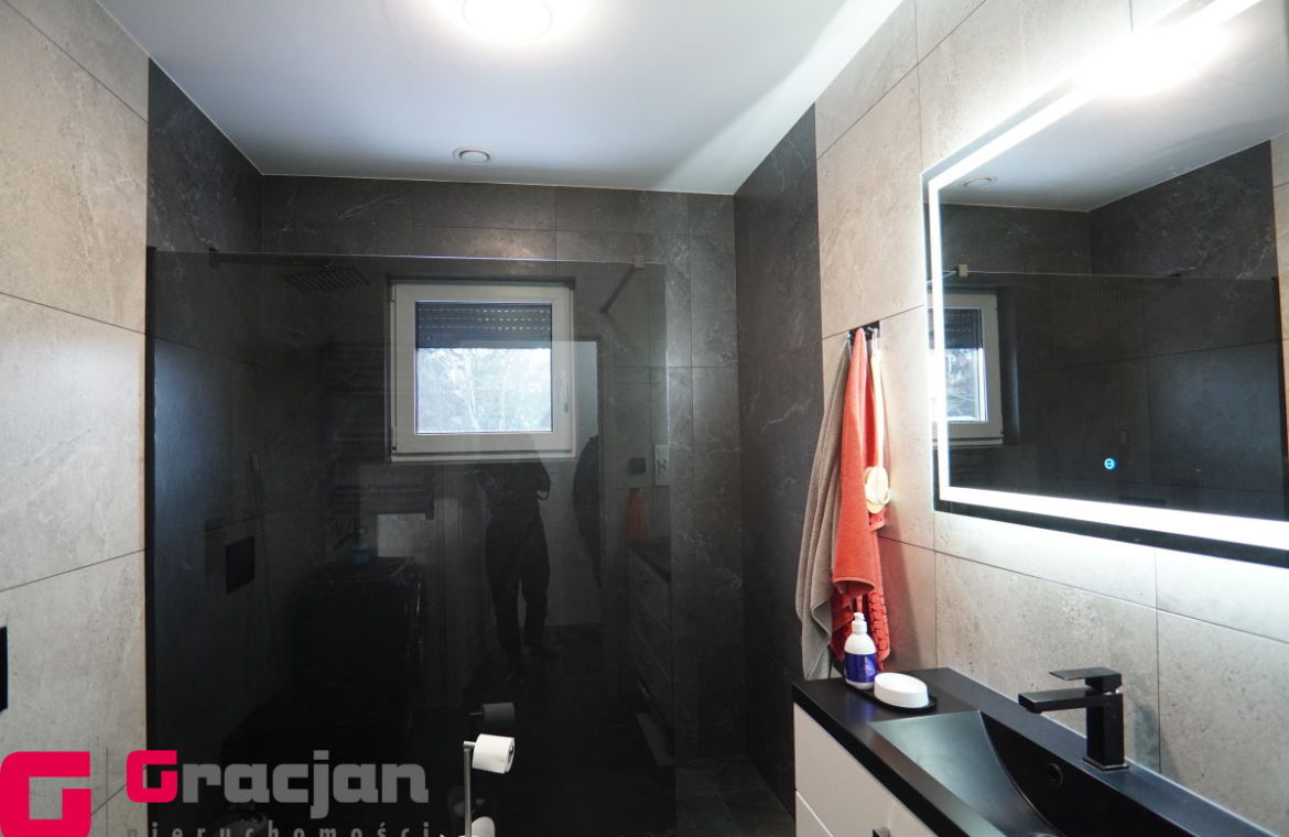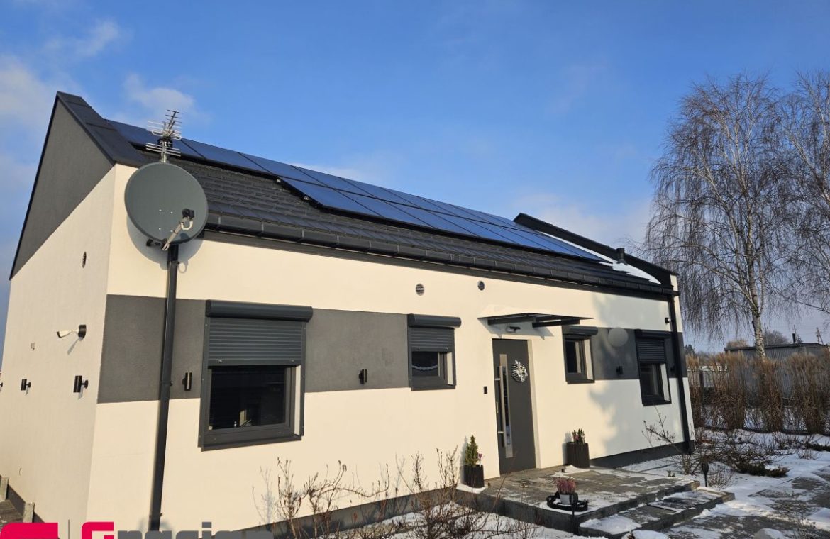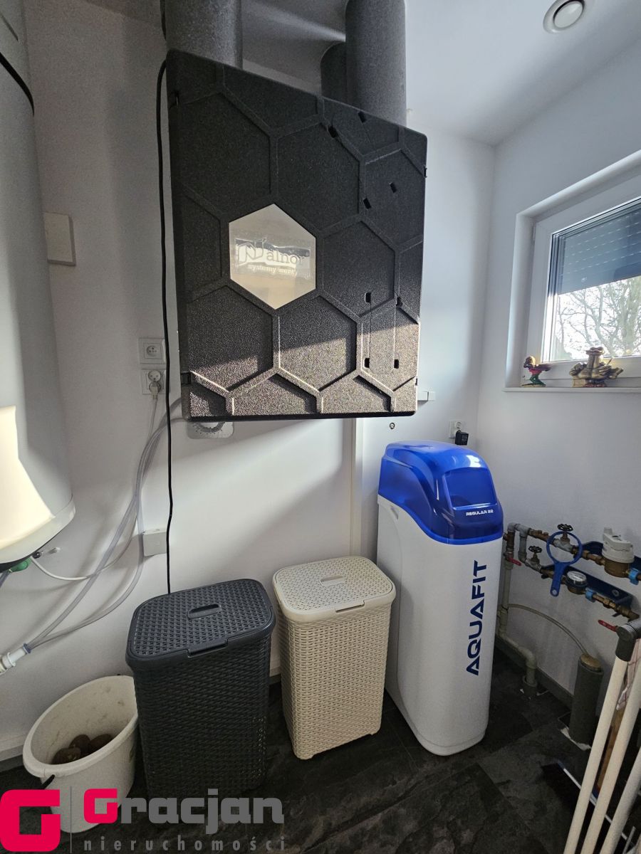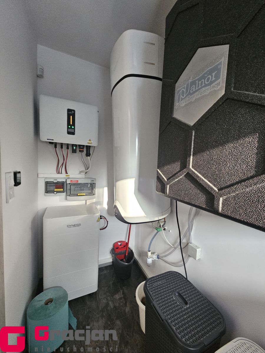 Nowoczesne budownictwo pasywne – energooszczędność zapewnia dobre docieplenie budynku – niskie koszty ogrzewania ( roczny rachunek za prąd 2000 zł !!! ), dodatkowo okna 3 szybowe, wyposażone w rolety elektrycznie sterowane, klimatyzacja.