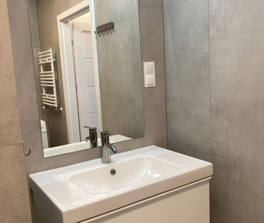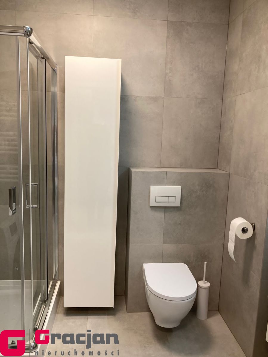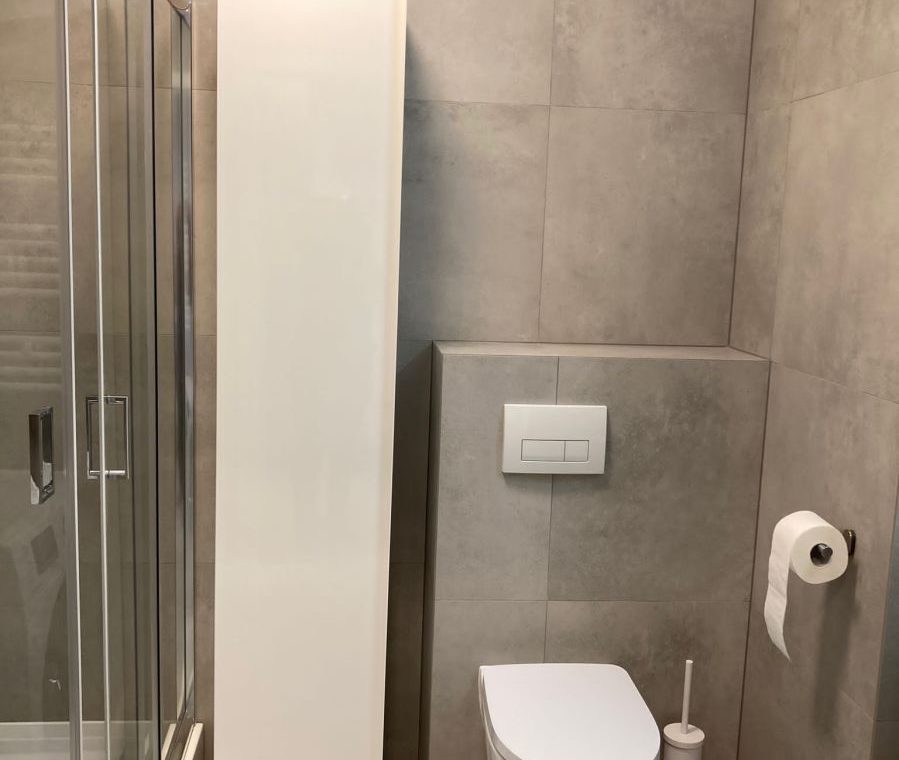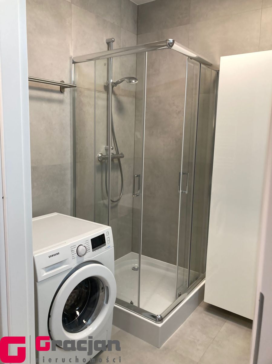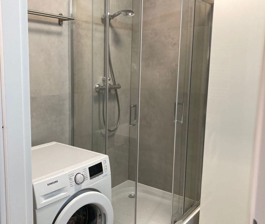 w pełni wyposażona łazienka: kabina, pralka, szafki łazienkowe,