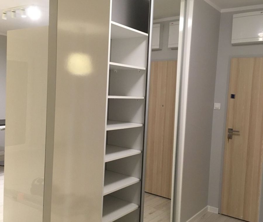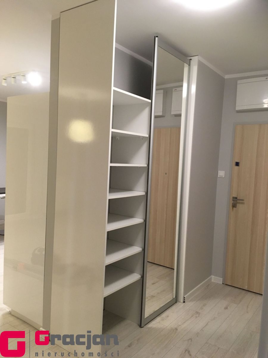 Lokal składa się z salonu z aneksem kuchennym, sypialni, łazienki, korytarza i balkonu, kuchnia zabudowana ze wszystkimi sprzętami (lodówka z zamrażalką, płyta elektryczna, piekarnik, pochłaniacz – w zabudowie), pokoje nieumeblowane.
