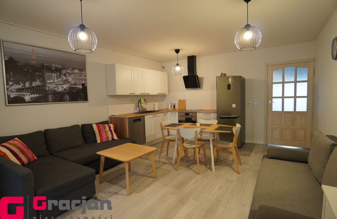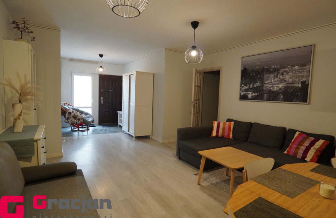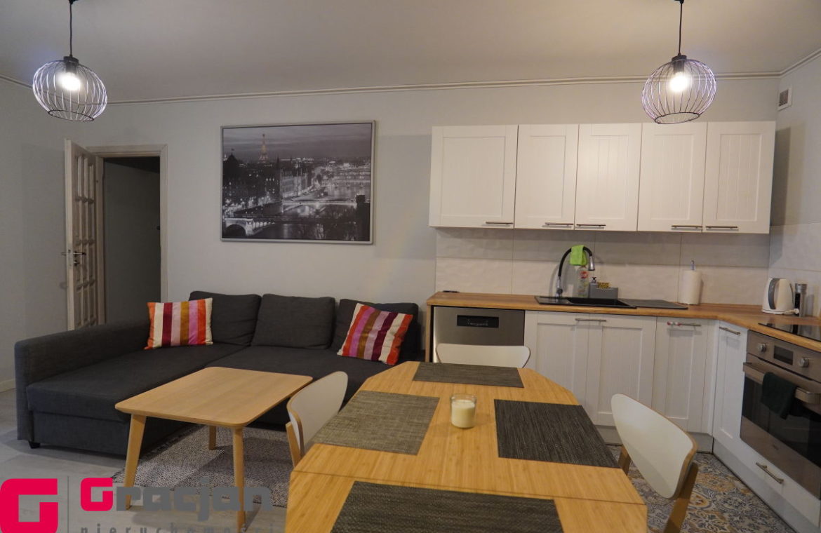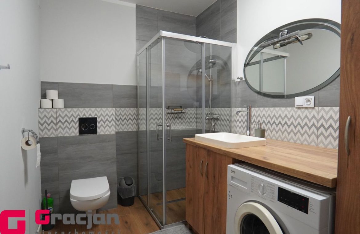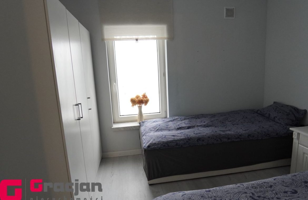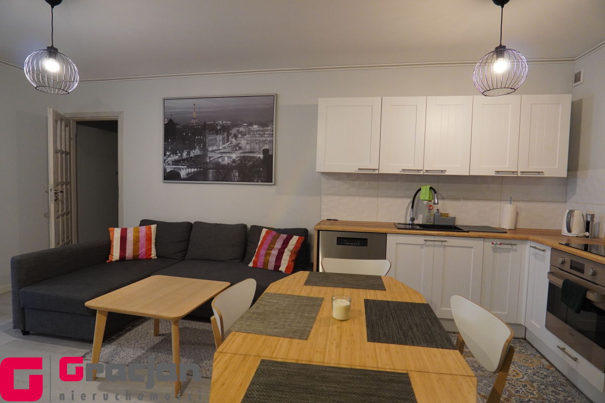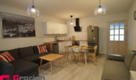 w pełni umeblowana i wyposażona, dwie oddzielne sypialnie i cześć dzienna z aneksem kuchennym ( lodówka, piekarnik, płyta indukcyjna, zmywarka, naczynia, kanapa, stoliki, stół, krzesła, telewizor z dostępem do internetu ), łazienka z kabiną prysznicową i pralką,