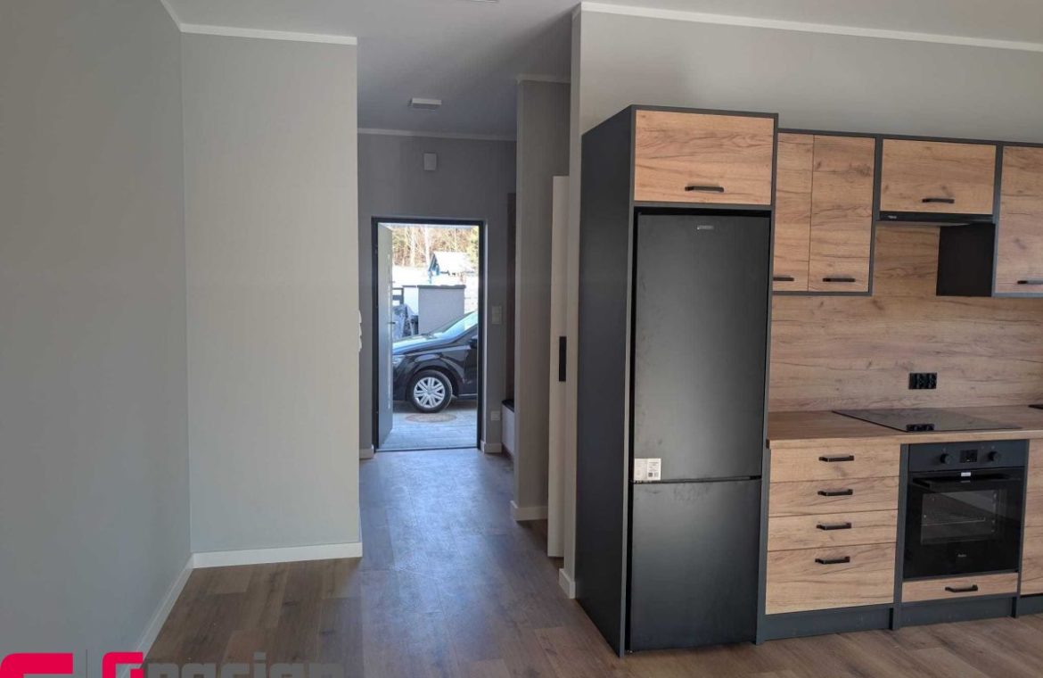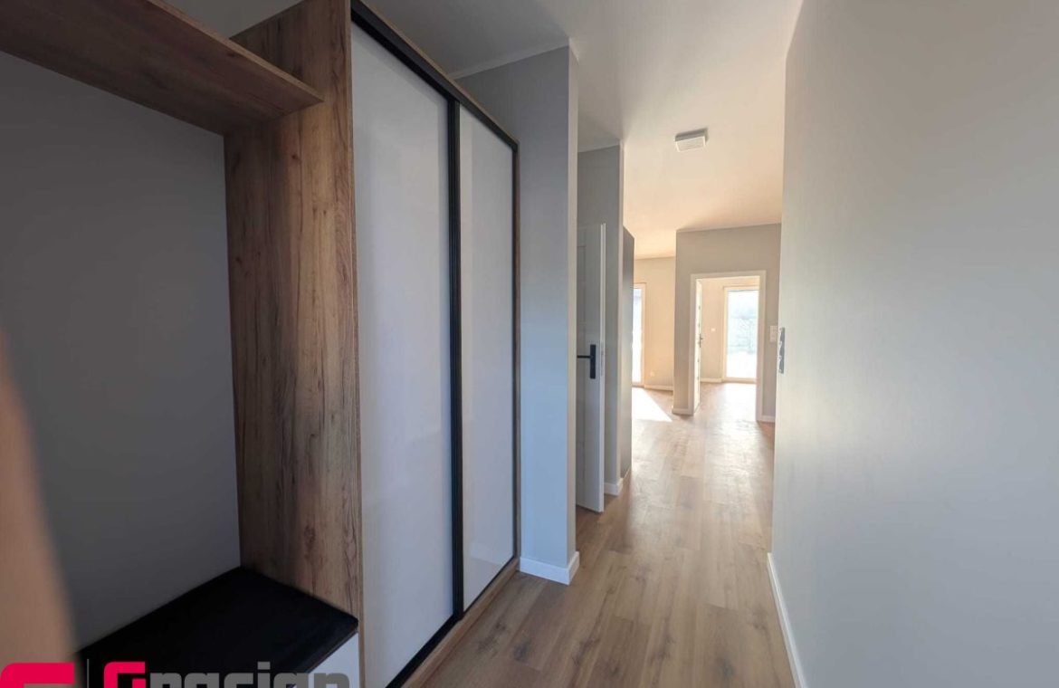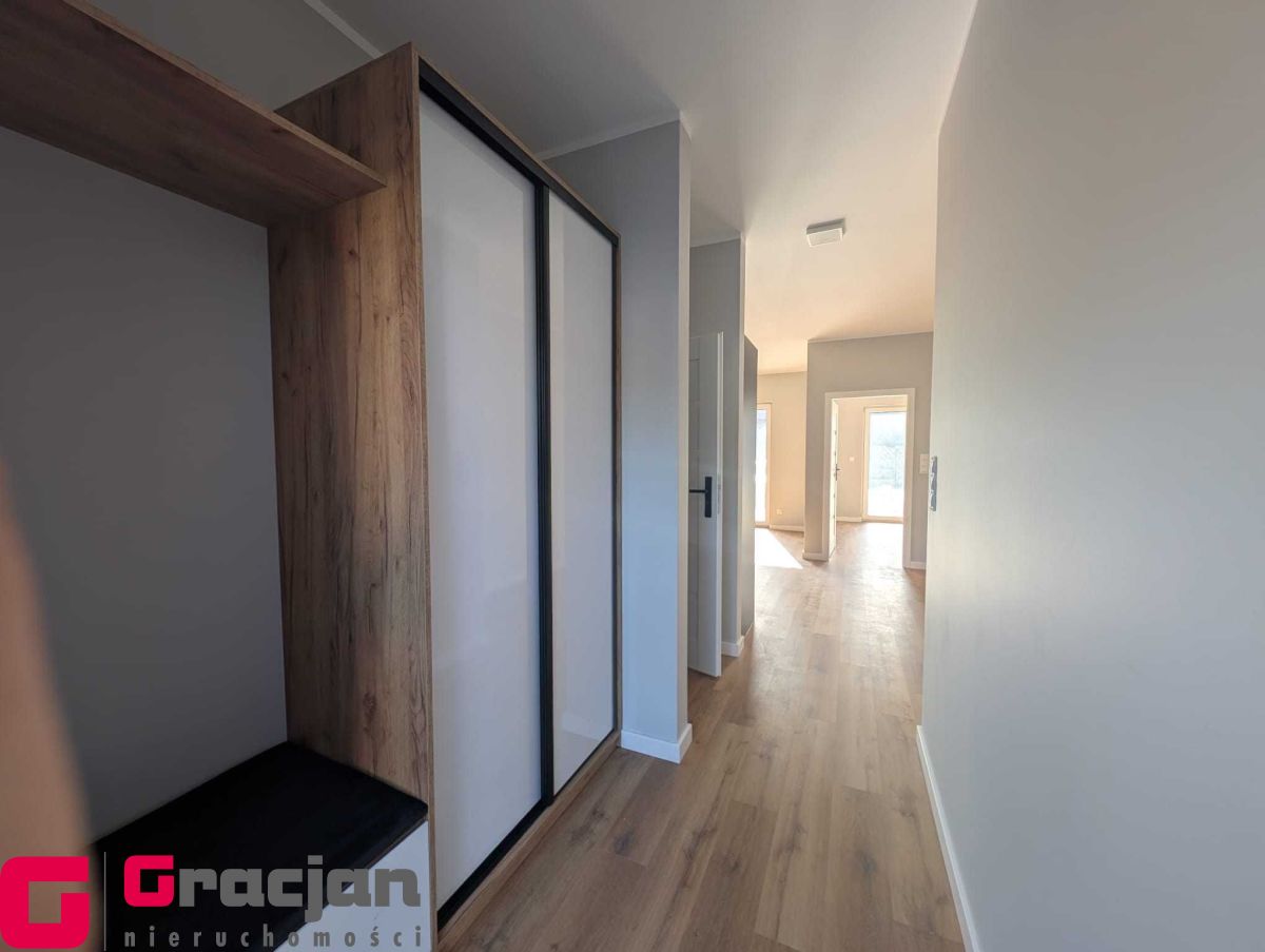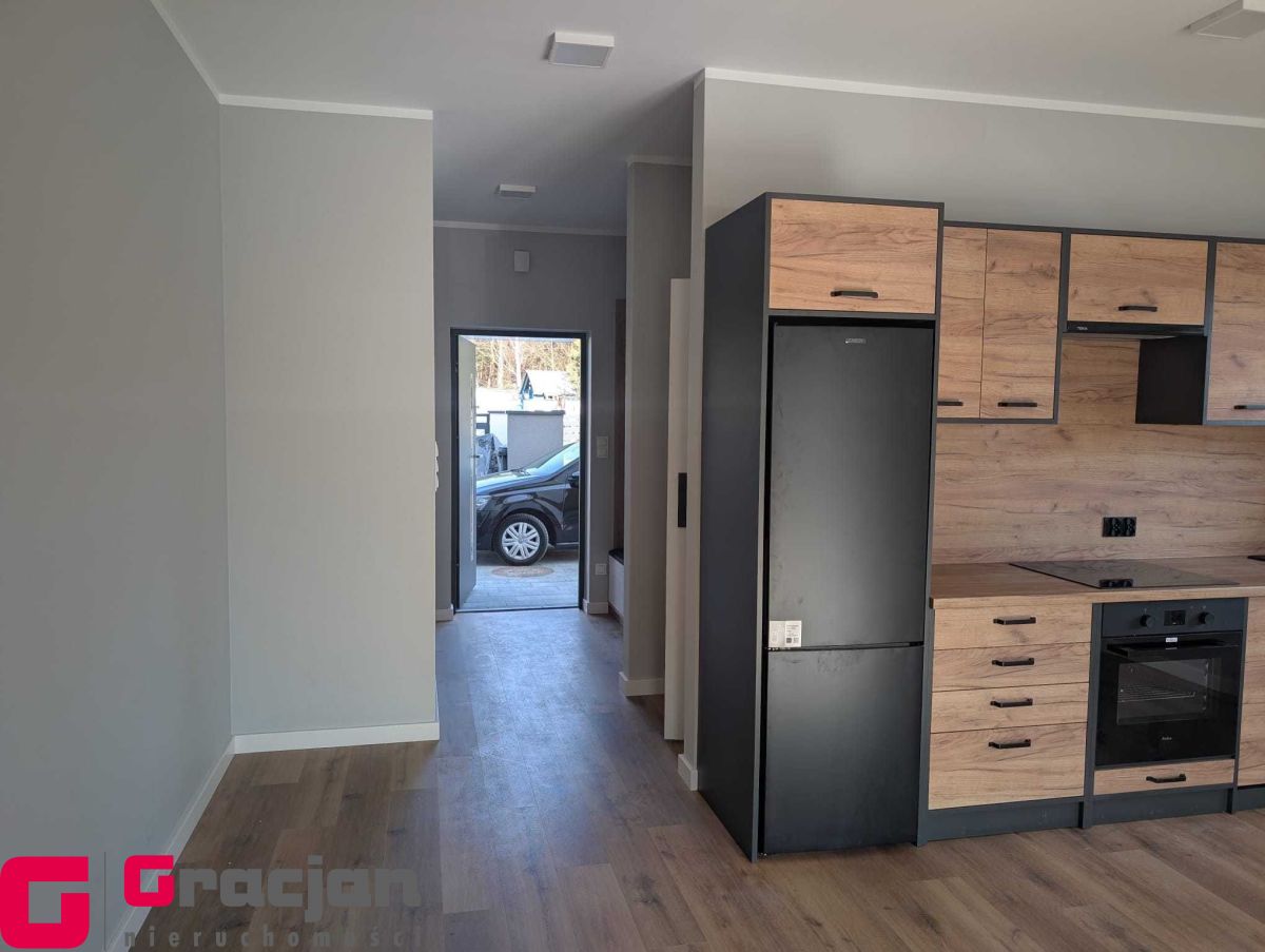 Umeblowana i wyposażona kuchnia i łazienka, szafa garderobiana w korytarzu, własne ogrzewanie gazowe podłogowe  – piec II funkcyjny