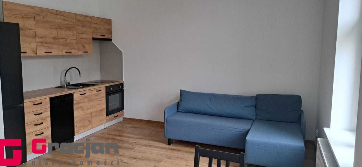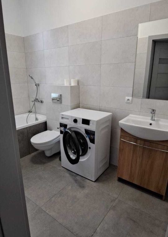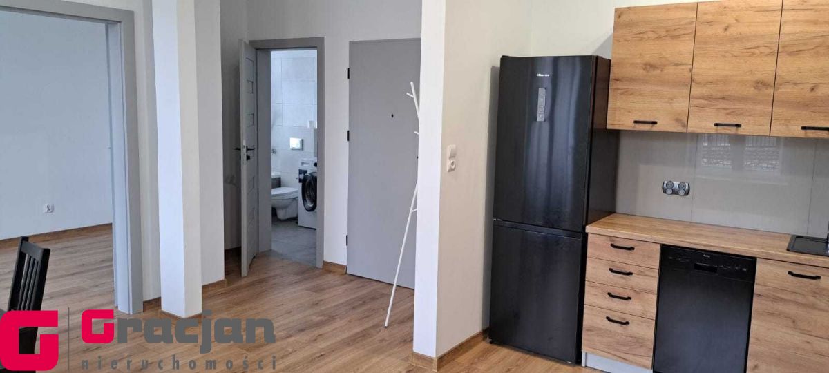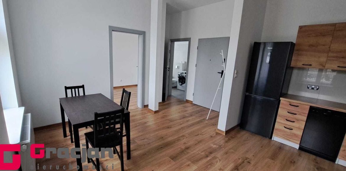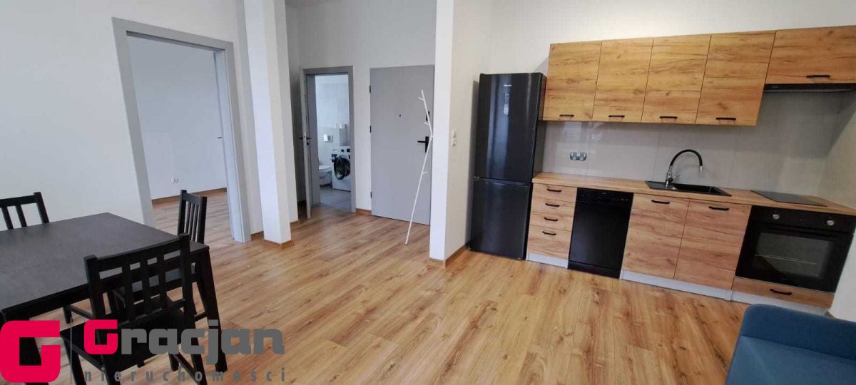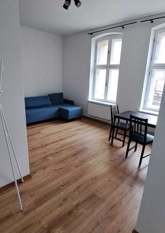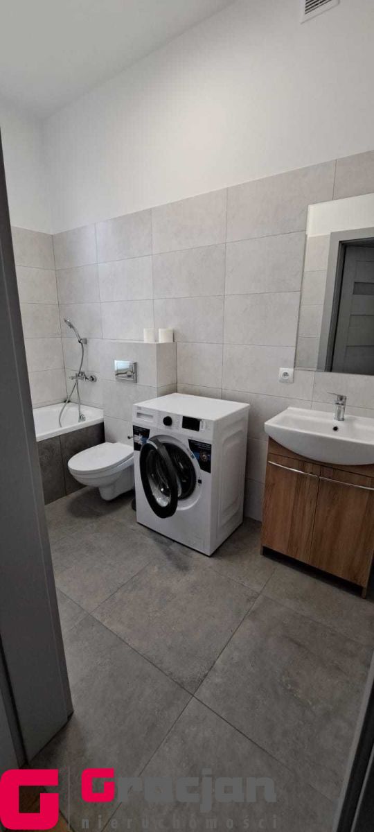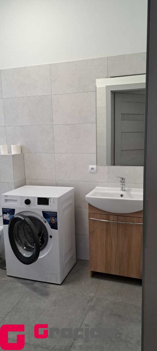 Umeblowana i wyposażona kuchnia, w salonie narożnik, stół i krzesła, w sypialni szafa garderobiana. Łazienka z pralką.