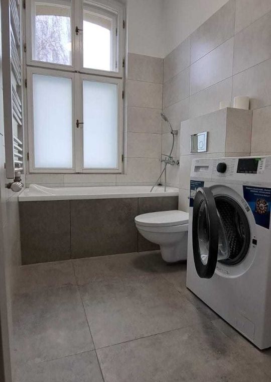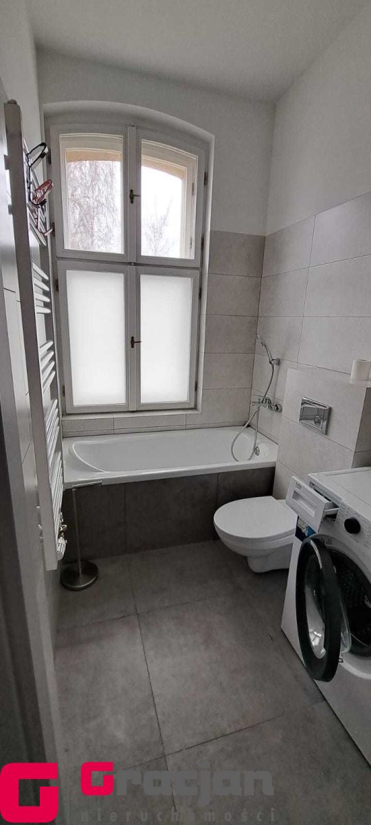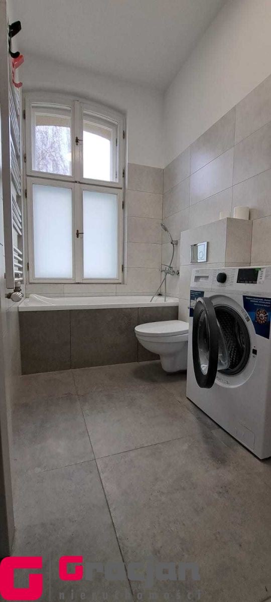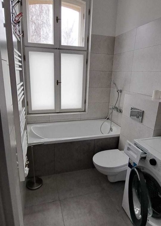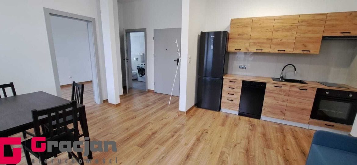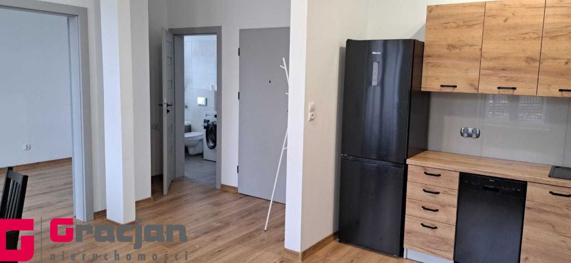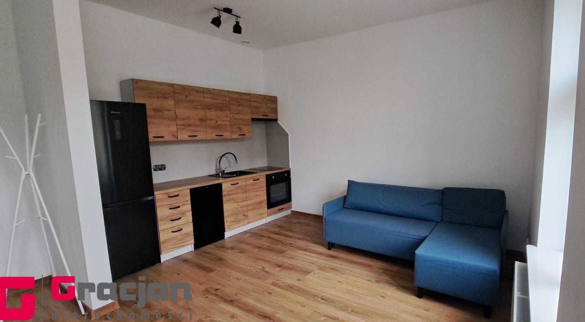 Umeblowana i wyposażona kuchnia, w salonie narożnik, stół i krzesła, w sypialni szafa garderobiana. Łazienka z pralką.