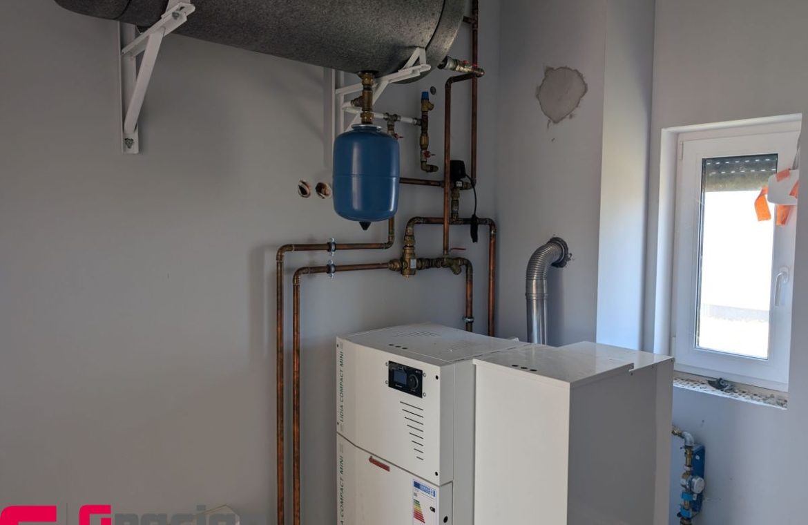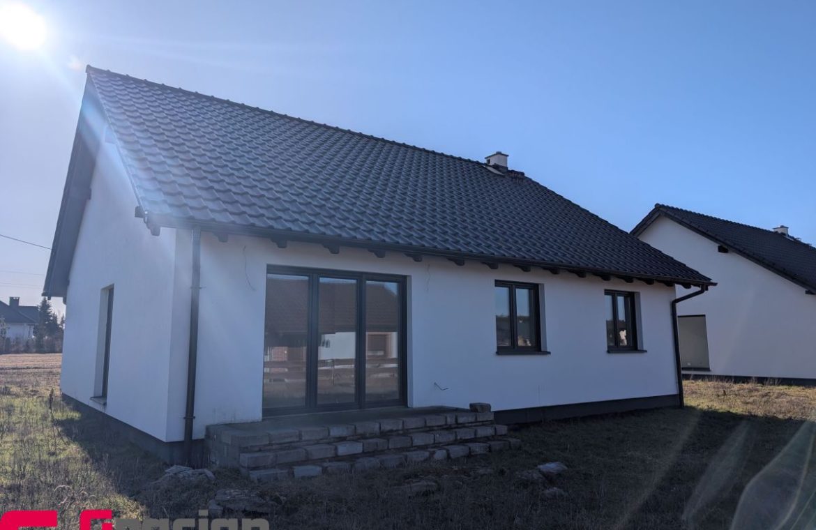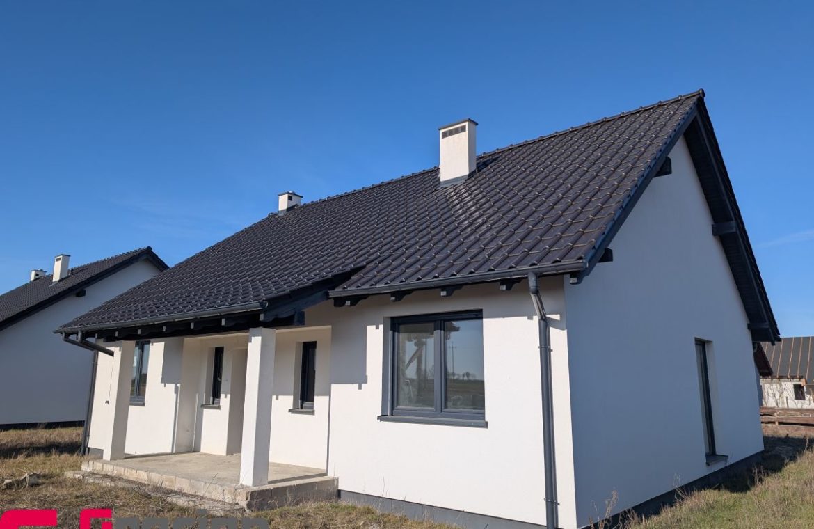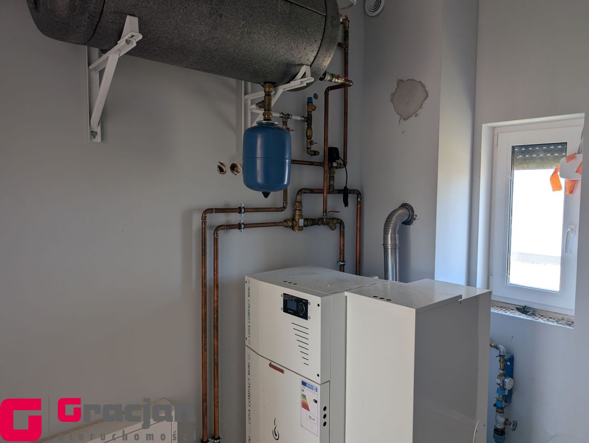 Budynek wykonany w standardzie podwyższonym: solidny dach, dwuspadowy, pokryty dachówką ceramiczną, tynki gipsowe plus szpachlowanie ( wymalowane na biało), we wszystkich oknach rolety zewnętrzne, rozprowadzony system ogrzewania – ogrzewanie podłogowe na całej powierzchni. Proponowany system ogrzewania : peled – piec zamontowany w kotłowni. Wodociąg miejski.