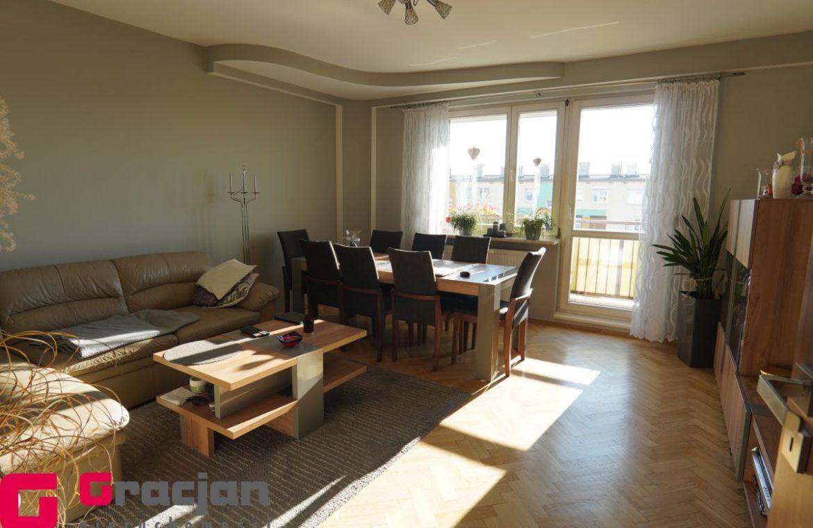 Wygodne mieszkanie 3 pokojowe w pełni umeblowane i wyposażone ( większość mebli i sprzętów widocznych na zdjęciach pozostają na wyposażeniu w cenie) we wszystkich oknach rolety zewnętrzne, dodatkowym atutem jest duża loggia od strony zachodniej.